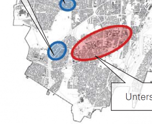 Ganz im Gegenteil: Auf Seite 17 ist im dritten Bullet-Point eine wesentliche Anforderung für die Nachverdichtung gegeben („Das Gebiet verfügt grundsätzlich über eine gute Erreichbarkeit sowie eine gute Versorgung mit Grünflächen, und Einkaufsmöglichkeiten und Dienstleistungen.“). Weder ist das Gebiet gut erreichbar (außerhalb der 600m U-Bahn-Radius im Gegensatz zu zwei U-Bahn-Stationen im untersuchten Gebiet), noch haben wir nennenswerte Einkaufsmöglichkeiten oder Dienstleistungen in unmittelbarer Nähe:
